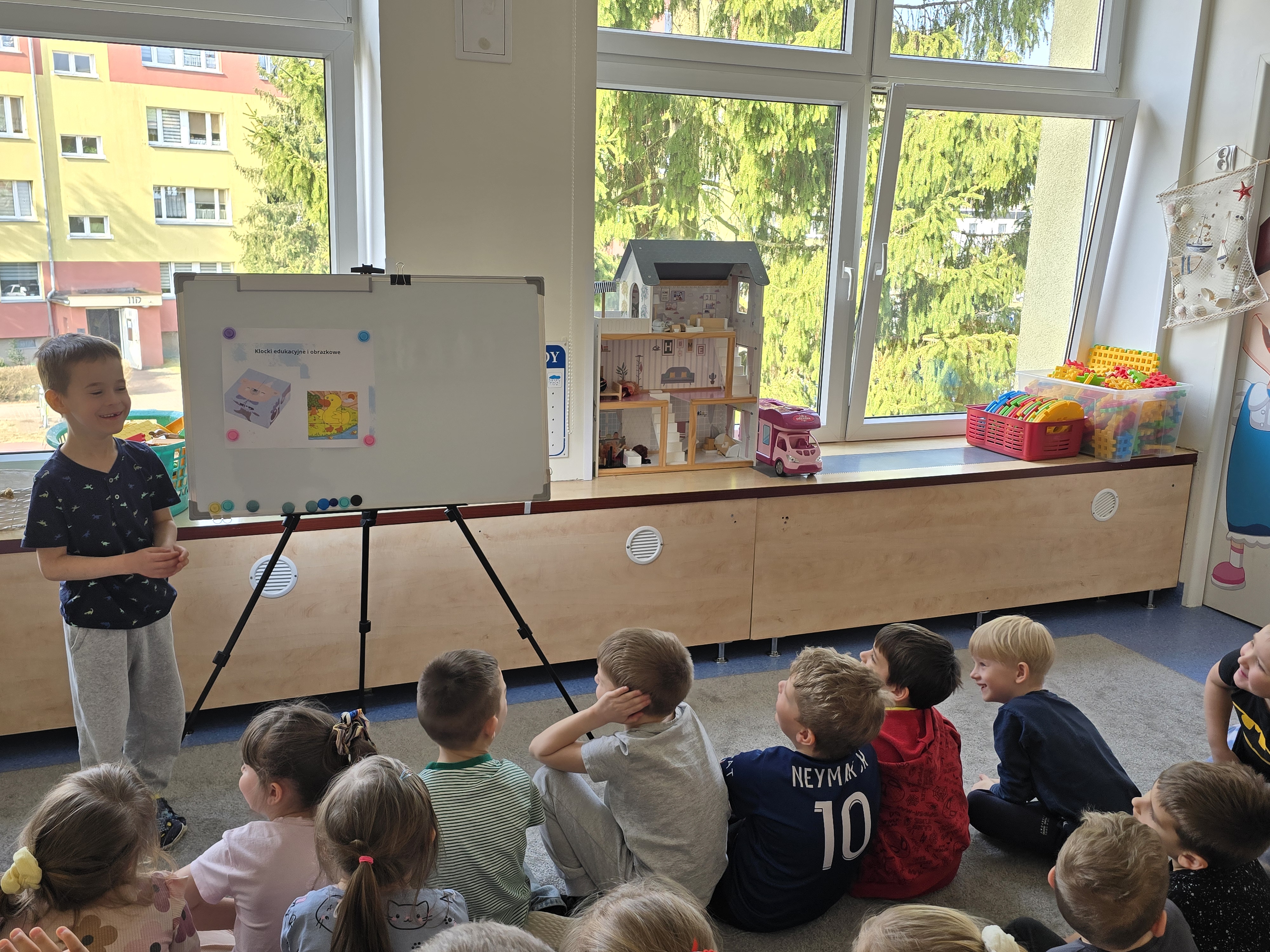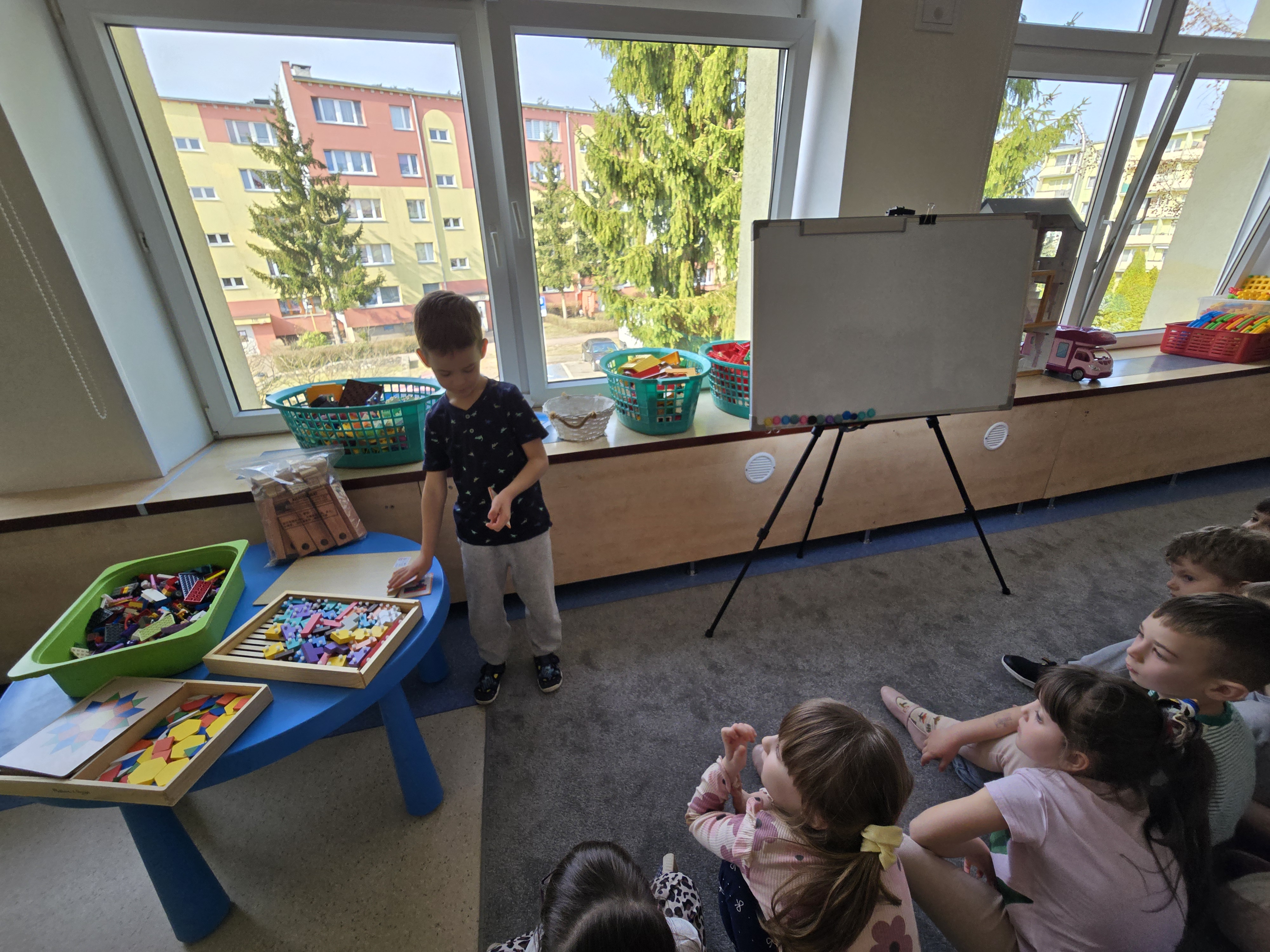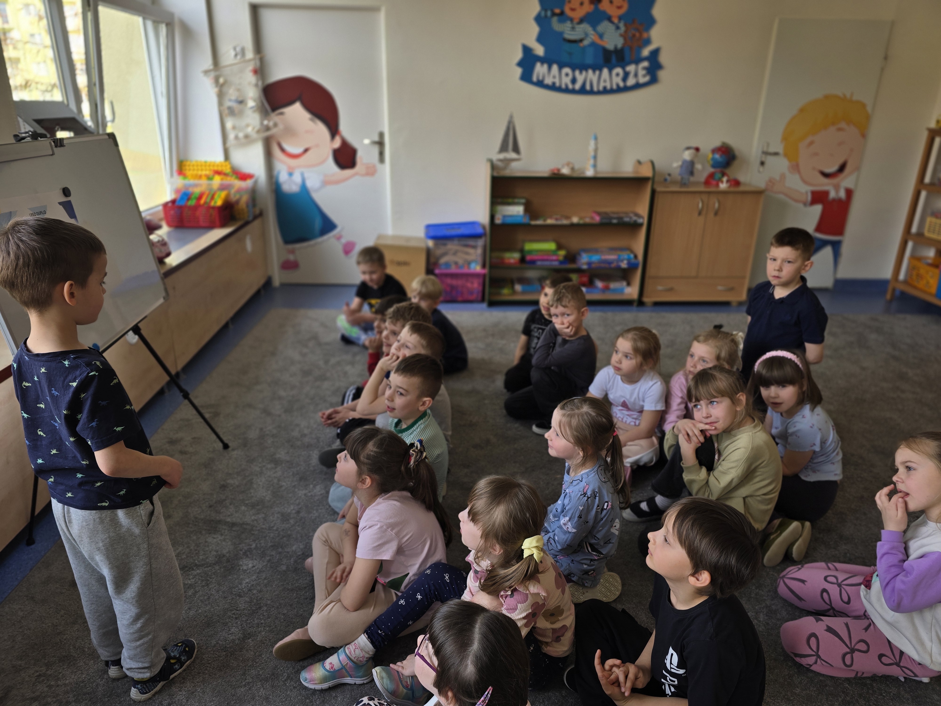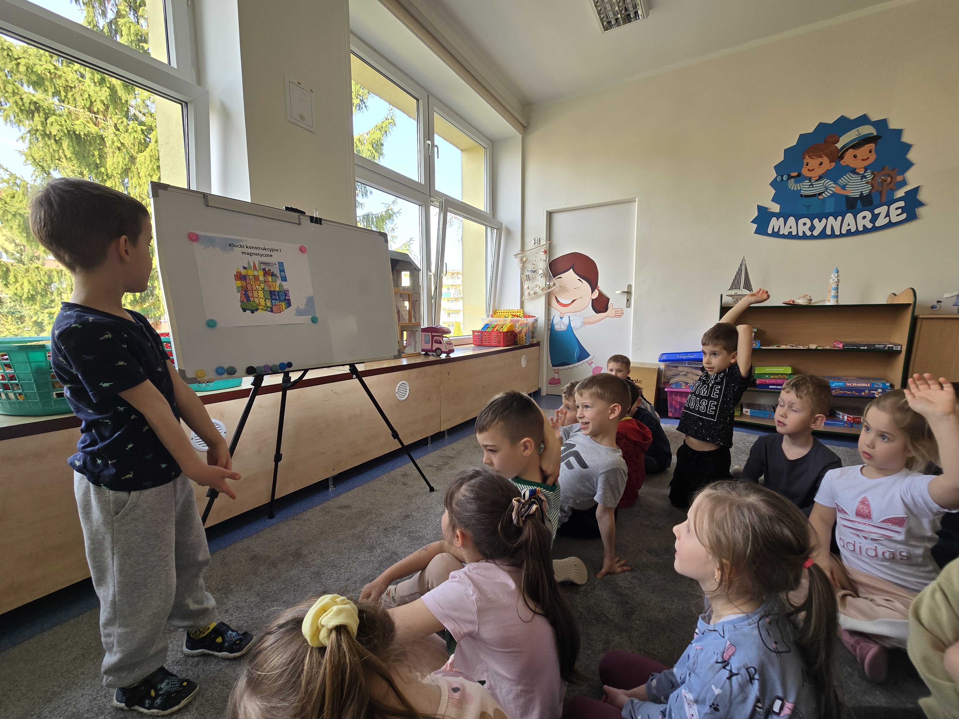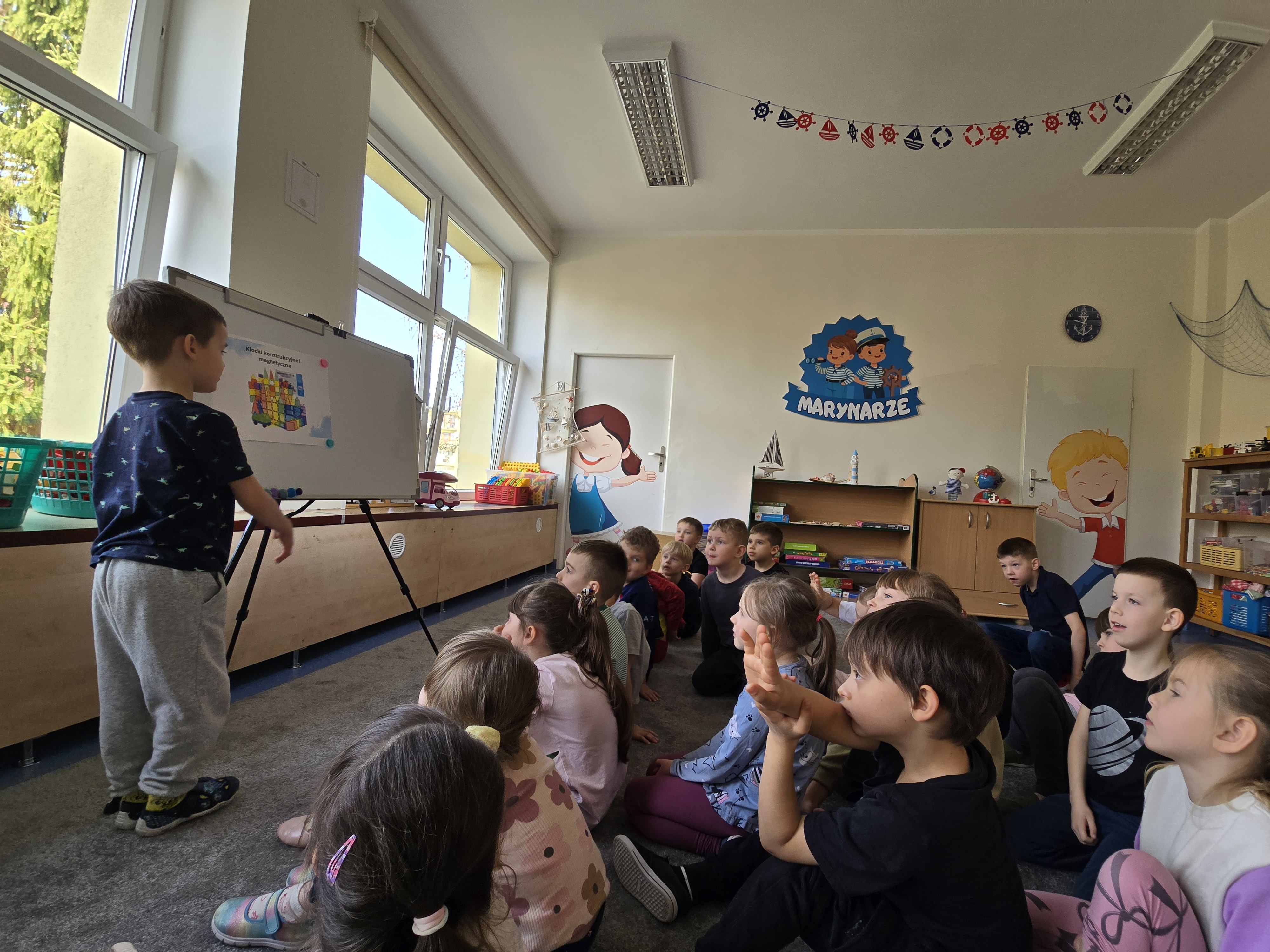 W grupie Marynarzy rozpoczął się autorski projekt "Dziecko w roli nauczyciela - uczymy sie od siebie" który polega na okresowym zamienieniu sie rolami miedzy dzieckiem i nauczycielem. Podczas zajęć o wybranej przez siebie tematyce dziecko staje się "małym nauczycielem", który prowadzi krótką aktywność/zajęcia dla swoich kolegów i koleżanek. Może zaprezentować swoje zainteresowania, umiejętność, talent lub przygotować prostą zabawę edukacyjną. Dzięki temu dzieci mają możliwość doświadczenia roli nauczyciela, rozwijania kompetencji komunikacyjnych, kreatywności oraz budowania pozytywnej samooceny. Pierwszym małym nauczycielem był dziś Paweł, który wspaniale poradził sobie z zadaniem. Paweł przeprowadził "zajęcia o klockach" spisał się wzorowo. Udało mu się zainteresować dzieci, zaangażować w zadania oraz zdyscyplinować grupę:)