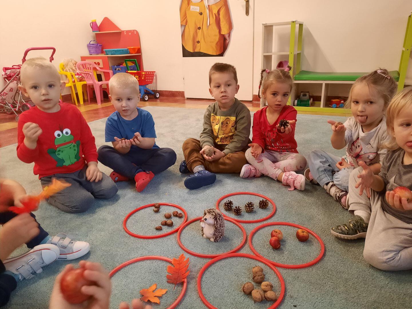 Grupa Jacek i Agatka uczą się codziennie nowych rzeczy. Odkrywają nieznane. Stają się poszukiwaczami oraz badaczami. Dziś mieli okazję zbadać oraz poznać Jesienne Dary Pani Jesień. Dzieci były bardzo zaciekawione zabawą. Przeliczały, rozpoznawały kształty, poznawały zapach. Zaprzyjaźniliśmy się dziś z nowym przyjacielem Jeżykiem Benkiem. Wszystkie dzieci z tejże grupy mądre główki mają i dary jesieni rozpoznają :)